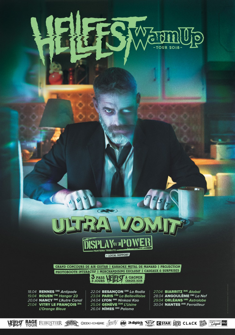 Toute l'équipe du Warm Up sera accompagnée du groupe Ultra Vomit qui vous proposera un show spécial Hellfest, mais aussi par les espagnols de Display Of Power qui se feront une joie de faire revivre tous les soirs l’âme de Dimebag Darrel avec leur tribute band de Pantera.