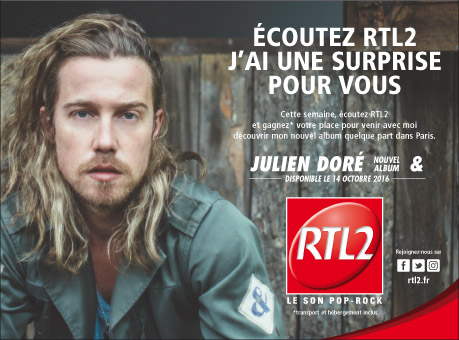 Cette semaine, écoutez RTL2 et gagnez votre place pour découvrir l'histoire du nouvel album de Julien Doré en sa compagnie quelque part dans Paris. Jouez aussi sur RTL2.fr pour remporter vos places !