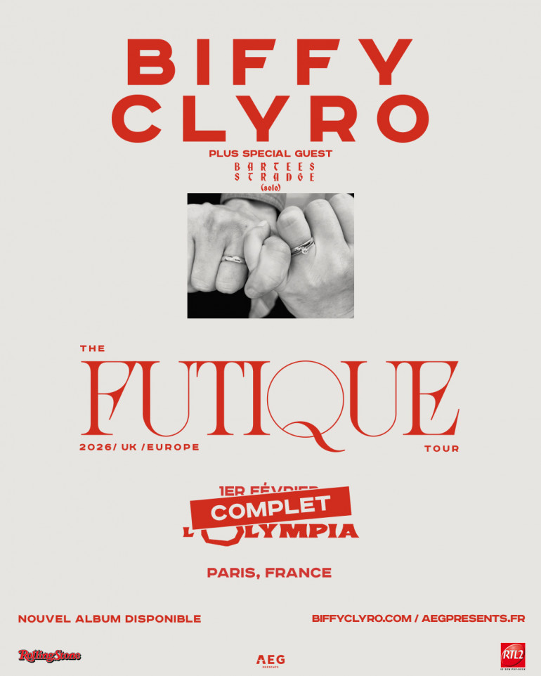 Biffy Clyro annonce son grand retour à Paris avec un concert unique à L’Olympia le 1er février 2026, dans le cadre de sa prochaine tournée européenne "The Futique Tour 2026", en partenariat avec RTL2. Le groupe sera accompagné par Bartees Strange pour sa date parisienne.