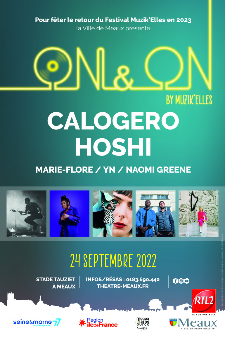 Et pour célébrer ce retour, la Ville de Meaux propose une soirée musicale exceptionnelle le samedi 24 septembre 2022 au stade Tauziet : "On&On by Muzik'Elles" avec Calogero en tête d'affiche et Hoshi, la nouvelle étoile de la chanson française. Et aussi des talents émergents : Marie-Flore, le groupe YN et Naomie Greene accompagnée de sa harpe électrique. Et dans l’esprit des Muzik’Elles, attendez-vous aussi à quelques surprises....