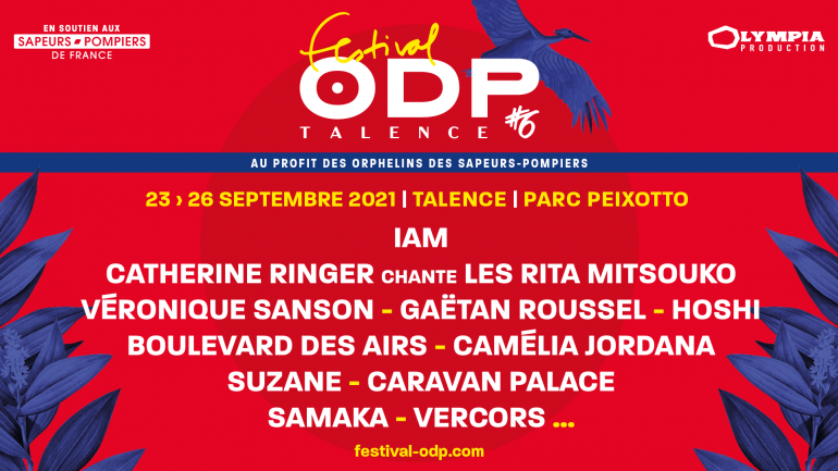 Le rendez-vous musical au profit des orphelins des sapeurs-pompiers de France aura bien lieu cette année du 23 au 26 septembre 2021. L'association Festival ODP dont Eric Jean-Jean du #DriveRTL2 est le parrain a dévoilé ce vendredi 11 juin la programmation. Les amateurs de Pop-Rock retrouveront Catherine Ringer, Gaëtan Roussel, Boulevard des airs et Hoshi sur la scène du Parc Peixotto. Mais Caravan Palace, Véronique Sanson, Suzane, Camelia Jordana et Vercors seront également au rendez-vous.