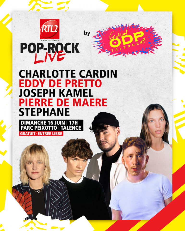 RTL2 réaffirme chaque année son partenariat avec le festival ODP Talence en offrant une soirée de showcases gratuits au Parc Peixotto de Talence. Depuis 4 ans, 5 artistes issus de la playlist RTL2 viennent partager leur univers sur scène. Et ce dimanche 16 juin c'est Charlotte Cardin, Eddy de Pretto, Joseph Kamel, Pierre de Maere et Stéphane, qu'on retrouvera sur la scène d'ODP pour une édition spéciale de RTL2 Pop-Rock Live,