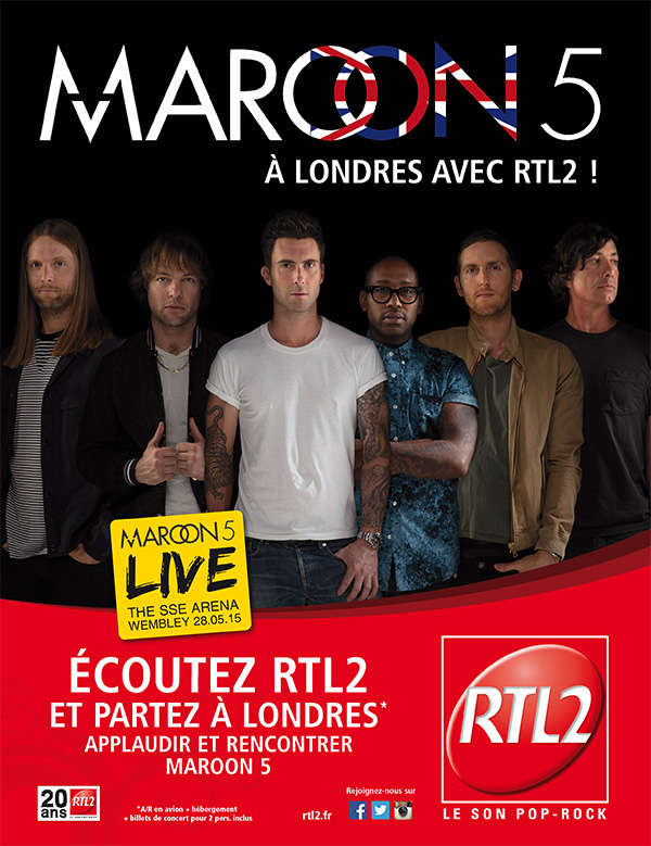 Pour tenter votre chance, écoutez RTL2 dès votre réveil. Dès que vous entendez deux titres de Maroon 5 à la suite soyez les premiers à appeler la radio au 3228 (0,34 euros/mn).