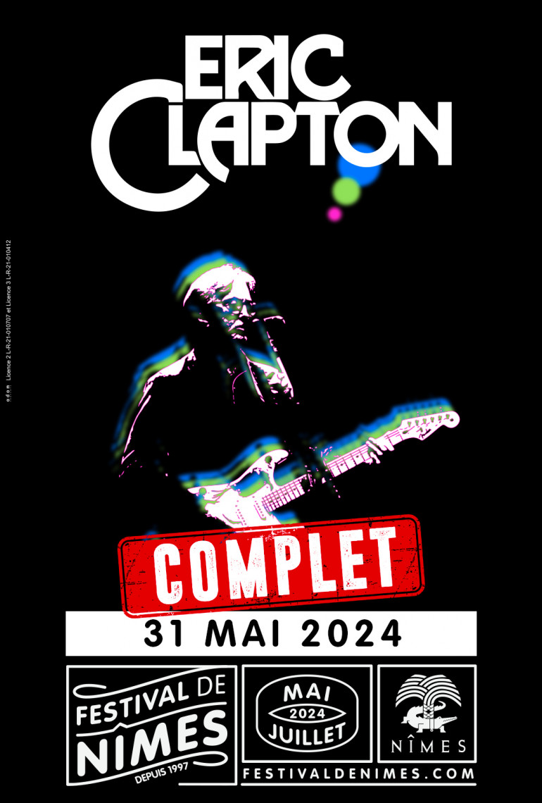 Le concert d'Eric Clapton prévu le vendredi 31 mai 2024 au Festival de NÎmes affiche désormais complet !