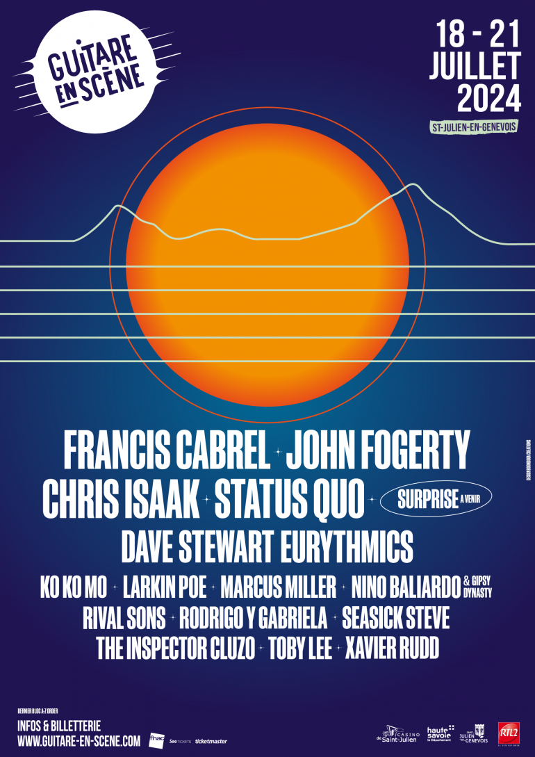 John Fogerty et Status Quo seront à l'affiche du concert du jeudi 18 juillet. Chris Isaak et Larkin Poe joueront le vendredi 19 juillet. Francis Cabrel et Rodrigo y Gabriela monteront sur scène le samedi 20 juillet.