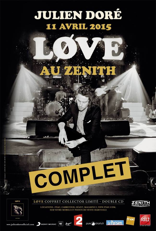 Le succès ne se dément pas pour Julien Doré, LØVE le dernier album de Julien Doré a été certifié triple disque de platine avec plus de 300 000 exemplaires vendus et sa tournée commencée en 2014 affichait complet pour la plupart des dates.