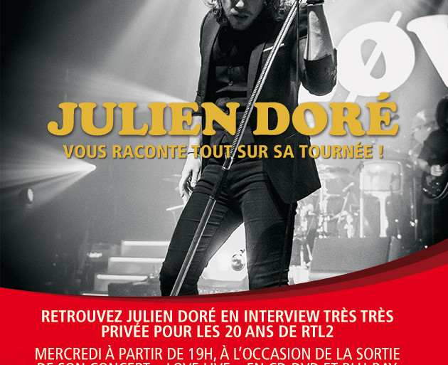 Mercredi 18 février à partir de 19h, à l’occasion de la sortie de son concert « Love Live » en CD-DVD et Blu-Ray, Julien Doré se confie au micro de RTL2.