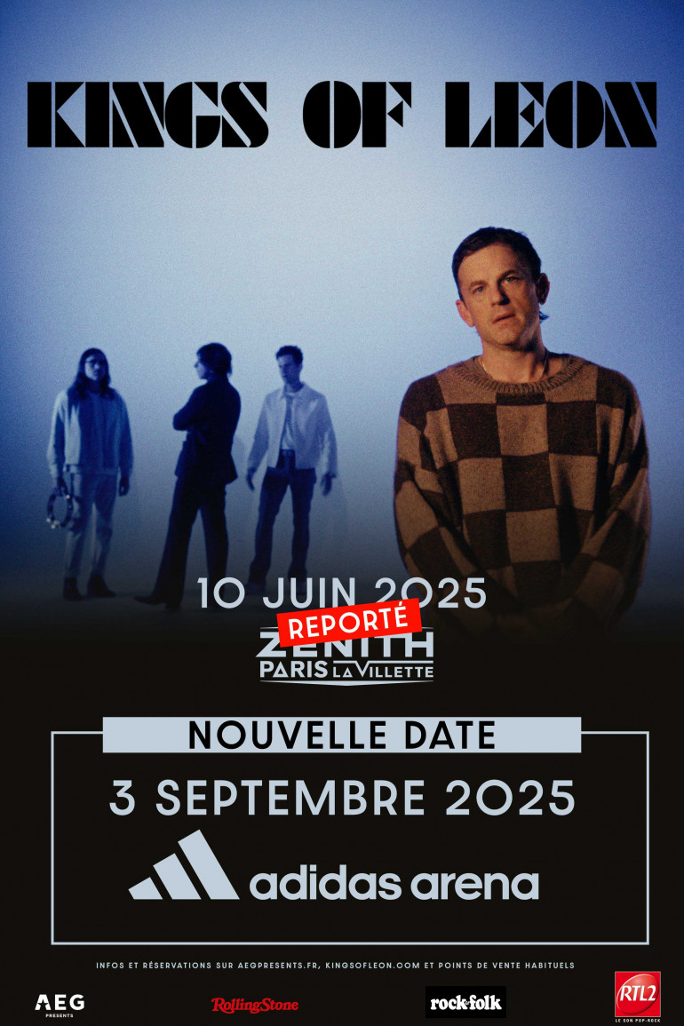 Le retour très attendu de Kings Of Leon à Paris devra patienter encore un peu. Prévu initialement le 10 juin 2025 au Zénith Paris – La Villette, le concert est reporté au mercredi 3 septembre 2025 à l’Adidas Arena, en raison d’une blessure sérieuse de Caleb Followill, chanteur et guitariste du groupe.
