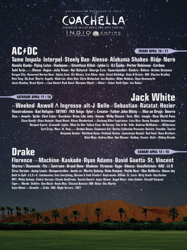 Une célébration de la musique actuelle et de tous ces genres sur deux week-ends d'avril dans le désert californien. Si en 2014 on a envoyé des auditeurs de RTL2 y voir Muse, pour l'édition 2015 ce sont les infatigables rockeurs australien AC/DC qui se posent en tête d'affiche.