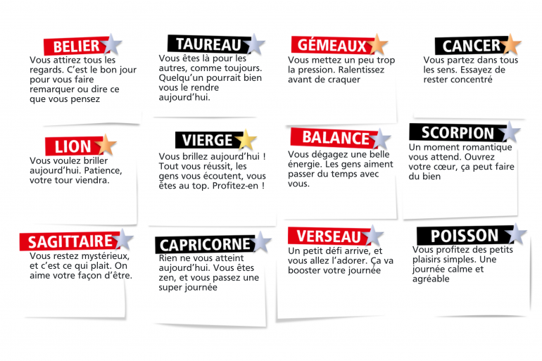 VIERGE : Vous brillez aujourd’hui ! Tout vous réussit, les gens vous écoutent, vous êtes au top. Profitez-en !