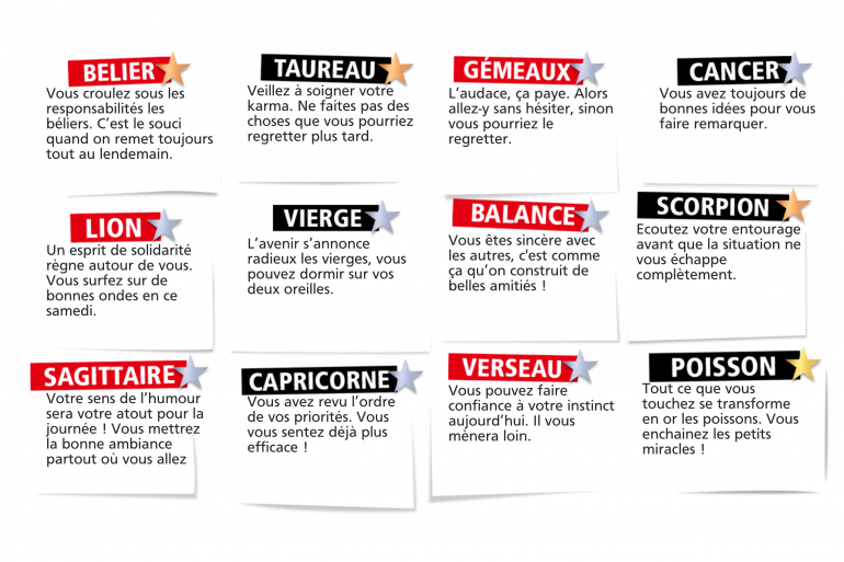 BÉLIER : Vous croulez sous les responsabilités les béliers. C’est le souci quand on remet toujours tout au lendemain.