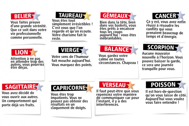 BELIER : vous faites preuve d’une grande sérénité. Que ce soit dans votre vie professionnelle comme personnelle.