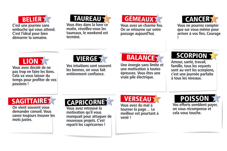 BELIER : C’est une journée sans embuche qui vous attend. C’est l’idéal pour bien démarrer la semaine.