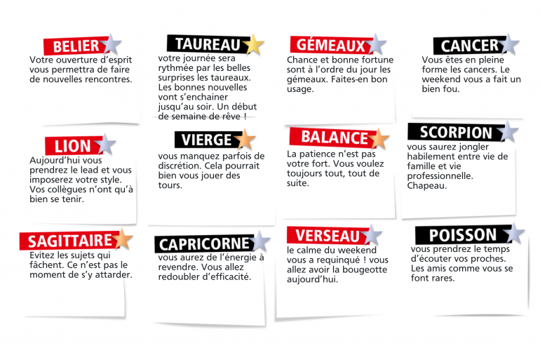 TAUREAU : votre journée sera rythmée par les belles surprises les taureaux. Les bonnes nouvelles vont s’enchainer jusqu’au soir. Un début de semaine de rêve !