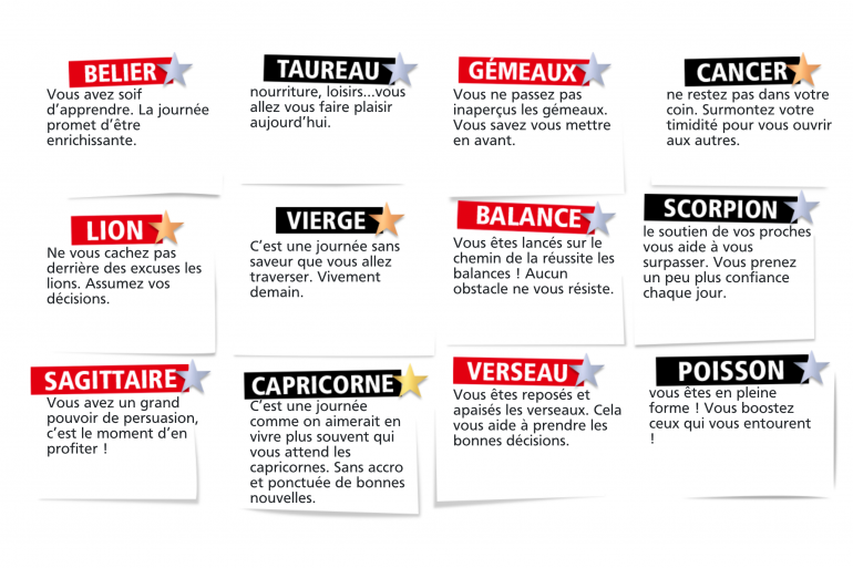 VIERGE : C’est une journée sans saveur que vous allez traverser. Vivement demain.