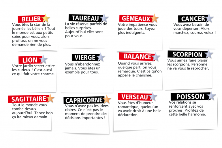 BELIER : Vous êtes la star de la journée les béliers ! Tout le monde est aux petits soins pour vous, alors profitez, on ne vous demande rien de plus.