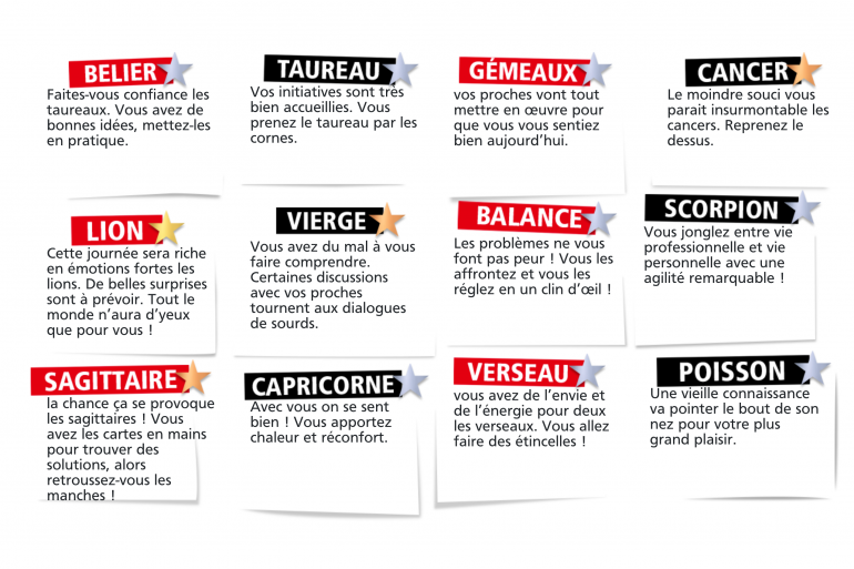 LION : Cette journée sera riche en émotions fortes les lions. De belles surprises sont à prévoir. Tout le monde n’aura d’yeux que pour vous !