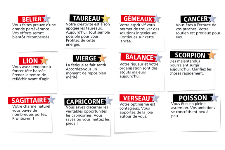 TAUREAU : Votre créativité est à son apogée les taureaux. Aujourd'hui, tout semble possible pour vous. Profitez de cette énergie.