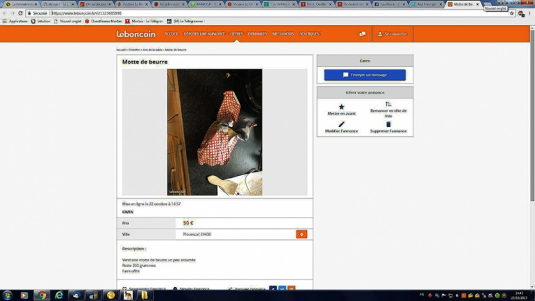 En période de pénurie de beurre, un homme de Plouescat dans Le Finistère, après avoir vu le rayon beurre complètement vide a fait un pari et à publié une annonce sur le site Le Bon Coin : "Une motte de beurre "entamée" à vendre 50 € !" Il ne restait que 350 grammes.