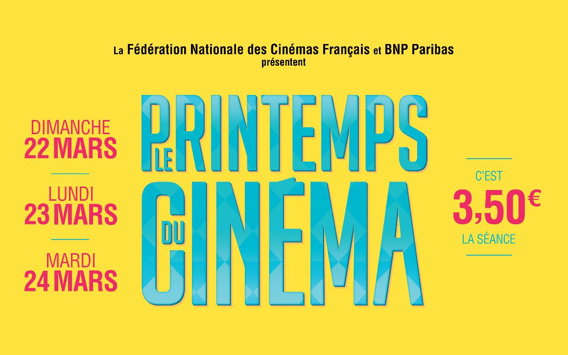 Partout en France et à partir d'aujourd'hui, c'est le Printemps du Cinéma. Le principe ? Toutes les séances à toutes les heures, c'est 3 euros 50 pour tout le monde. L'occasion de revoir certains films qui, pour l'occasion, sont de nouveau à l'affiche. Le Printemps du Cinéma c'est jusqu'à mardi dans tous les cinémas.