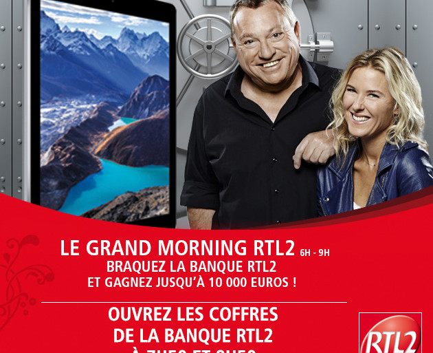 Écoutez le Grand Morning sur RTL2 de 6h à 9h. Et cette semaine RTL2 ouvrez les coffres de la Banque RTL2 à 7h50 et 8h50 au 32 28 (0,34 euros/mn) et gagnez un iPad Air. RTL2 le son Pop-Rock !
