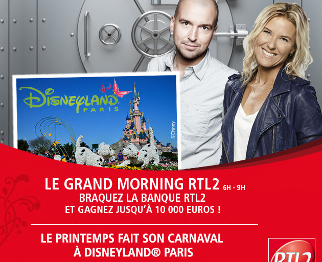 Écoutez le Grand Morning sur RTL2 de 6h à 9h. Et cette semaine, RTL2 vous offre séjour féerique à Disneyland® Paris. Ouvrez les coffres de la Banque RTL2 à 7h50 et 8h50 (0,34 euros/mn), et gagnez un séjour féerique pour 4 à Disneyland Paris.