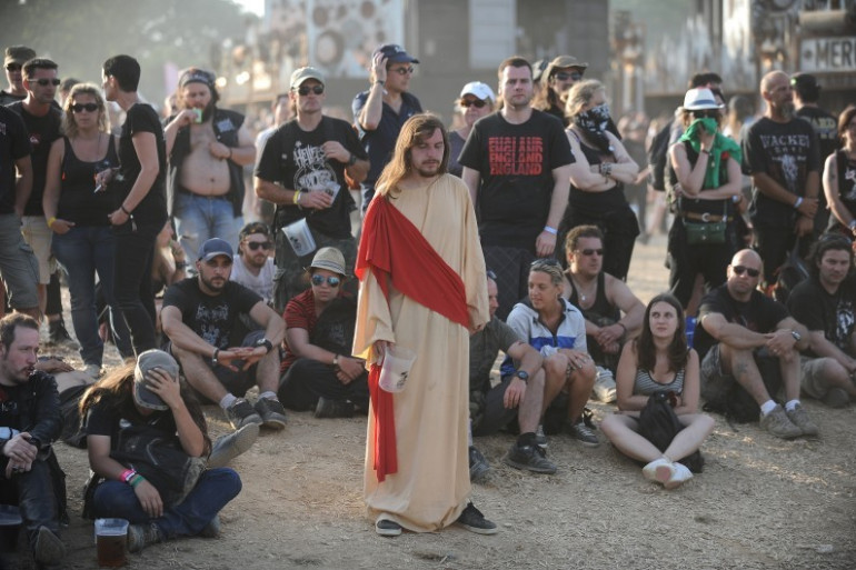 Un homme déguisé en Jésus à l'édition 2014 du Hellfest