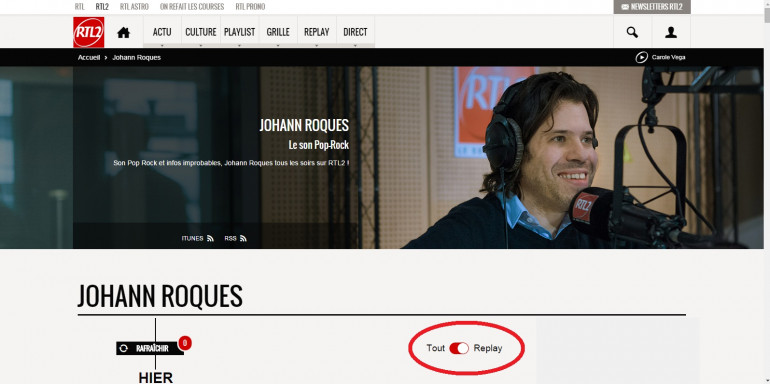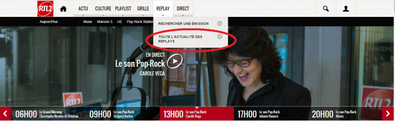 - en passant par l’onglet "Replay -> toute l’actualité des replays" pour accéder au dernier replay de l’émission qui vous intéresse.