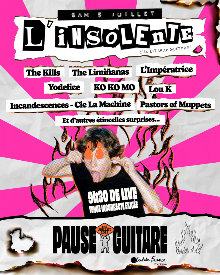 Plutôt qu’un simple au revoir, le festival a choisi de marquer les esprits avec 9h30 de musique ininterrompue, une première dans son histoire. De 18h à 3h30, aucune pause, aucun temps mort : une immersion totale dans une nuit de feu, de rock et d’énergie brute. Une expérience unique qui transformera Albi en un brasier musical jusqu’au bout de la nuit. L’INSOLENTE, est une célébration brûlante où tout est pensé pour repousser les limites du festival.