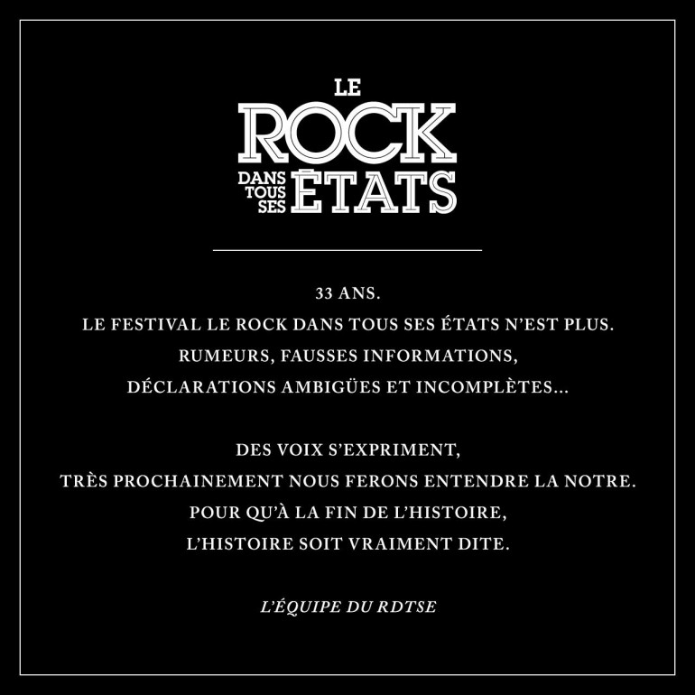 Les organisateurs du Rock dans tous ses États ont annoncé, dans un communiqué de presse publié le 20 décembre, la mort du festival. En cause, un déficit estimé à plusieurs centaines de milliers d'euros, que la mairie impute à la mauvaise gestion de l'association l'Abordage, organisatrice du festival, dont la mairie à précipité la dissolution. Une raison officielle qui pourrait être loin des vraies motivations de ce sacrifice.