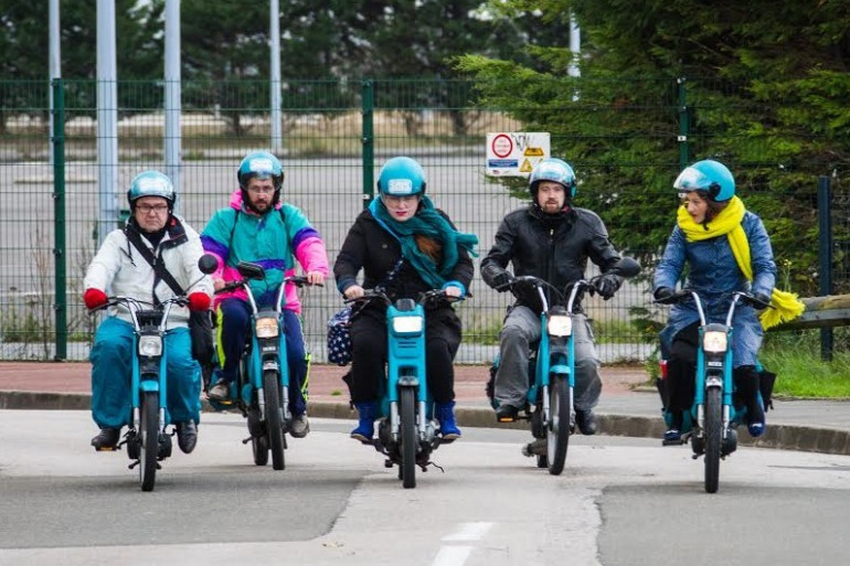 de chansons en cyclomoteurs dédicacées à domicile ou dans l'espace public