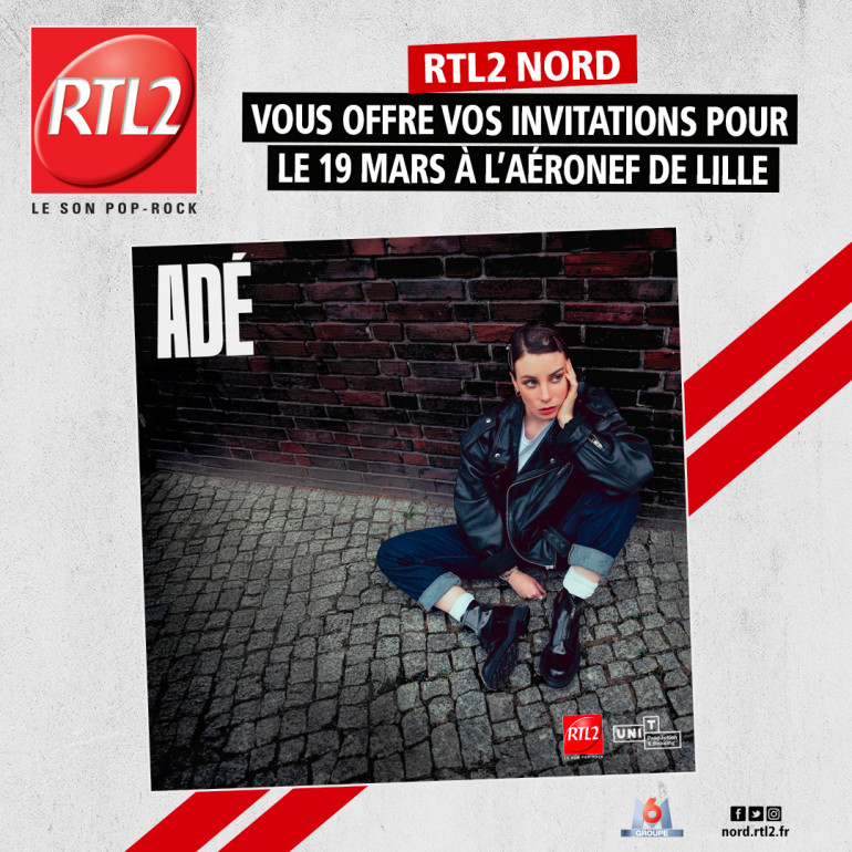 Cette semaine, dès que vous entendez le SIGNAL RTL2, soyez les premiers à composer le 03 59 82 21 31, et tentez de gagner vos 2 invitations au concert de Adé, le mercredi 19 mars à L'Aéronef de Lille, avec RTL2 Nord !