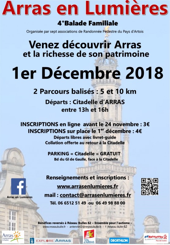 Cette balade est organisée en partenariat avec la ville d’Arras, La Communauté Urbaine d'Arras, le centre communal d'aide sociale d'Arras, l’office de tourisme d’Arras, Le magasin Décathlon d'Arras