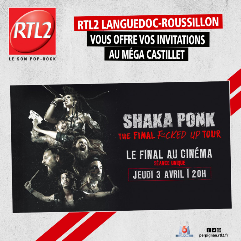 Pour jouer, écoutez RTL2 Languedoc-Roussillon entre midi et 16h, dès que vous repérez le signal RTL2, appelez le 04 30 32 36 01 et gagnez vos invitations pour le ciné-concert de Shaka Ponk, le 3 avril au Méga Castillet