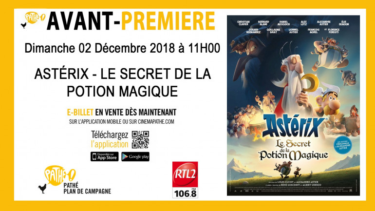 RTL2 Marseille vous invite à l'Avant-Première du film "Astérix et le Secret de la Potion Magique", ce dimanche 2 décembre à 11h au Pathé Plan de Campagne.