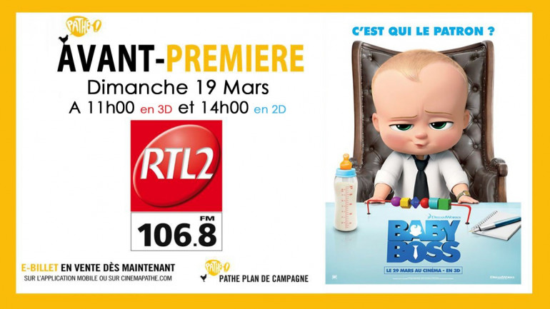 RTL2 Marseille vous invite à l'avant-première de BABY BOSS, dimanche 19 mars au Pathé Plan de Campagne !