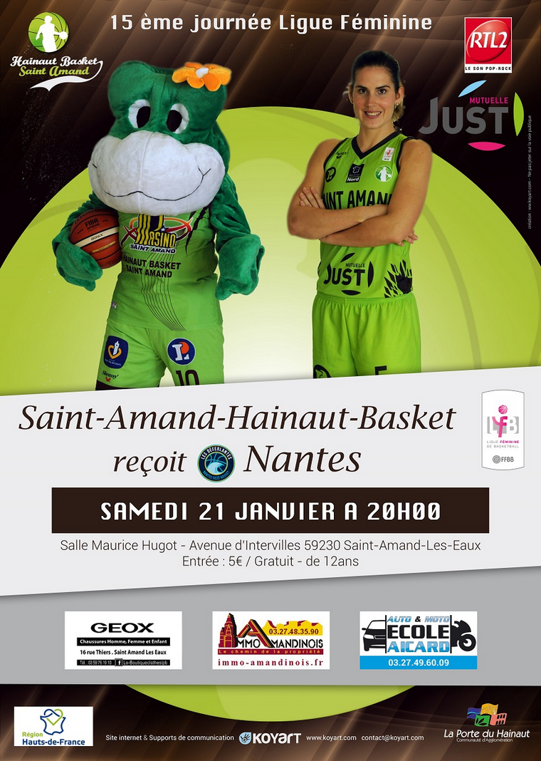 C'est la 15ème journée de ligue féminine le samedi 21 janvier à 20h00. L'équipe de Saint-Amand-Hainaut Basket reçoit Nantes.