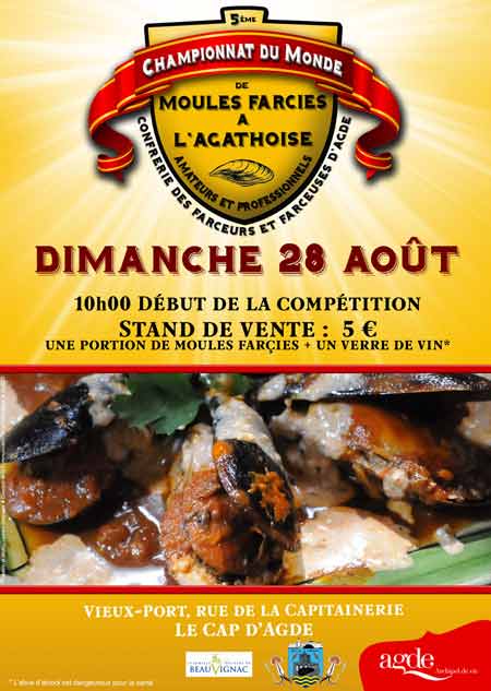 du Monde de Moules Farcies à l’Agathoise, rendez-vous sur le Vieux-Port d’Agde dès 10h00 un concours