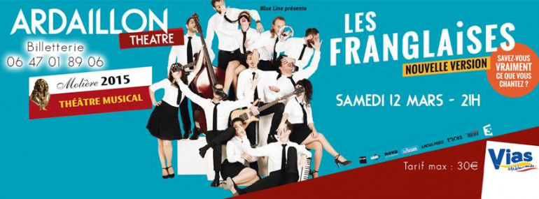 Ce samedi 12 mars le théâtre de l’ardaillon à Vias reçois le spectacle des FRANGLAISE, dans sa nouvelle version, un sens aigu du burlesque, une ode à la pop, les plus grand tube de la pop musique en version frenchi, une traduction façon littérale ou décalée des plus grands succès du répertoire anglo-saxon, spectacle qui a reçu le Molière 2015 du meilleur Théâtre Musical… location des places dans vos points de ventes habituels toutes les infos sur la page facebook de l’ardaillon.