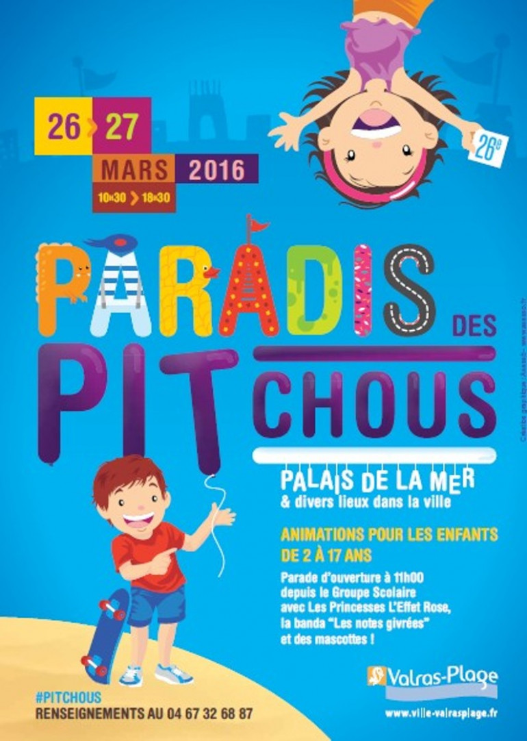 Samedi 26 dimanche 27 la ville de Valras-plage organise le paradis des pitchous au palais de la mer et dans divers lieu de la ville, sur place la Mini-ferme de Cessenon le samedi, 2 représentations sur scène avec l’Effet Rose samedi et dimanche avec Cendrillon, Blanche Neige, la Petite Sirène, Raiponce, la Reine des Neiges…) en nouveauté des ateliers cuisine, maçonnerie, œuf de paques, cinéma et beaucoup d’autre activité, un évènement aussi solidaire les bénéfices de la buvette installée durant les 2 journées au Palais de la Mer, seront reversés au profit de la ligue contre le cancer et l’espoir pour l’enfant. Retrouver tous le détail du programme sur ville-valrasplage.fr