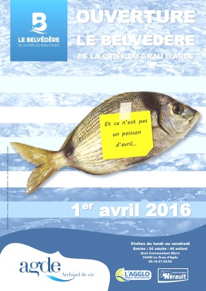 Le « Belvédère » permet au public de découvrir les coulisses de la Criée aux poissons du Grau d’Agde, sa flotte de pêche, ses installations, son fonctionnement, mais aussi les hommes et les femmes qui œuvrent au quotidien, sur l’eau et à terre, 150 m², d’un parcours pédagogique détaillé, avec panneaux explicatifs, photos prises sur le vif et vidéos à l’appui, vous pourrez ensuite vous plonger au cœur de l’activité professionnelle de la Criée avec les baies vitrées qui surplombent la salle des ventes permettent de suivre en direct le circuit du poisson, du pêcheur à l’acheteur. Toutes les infos sur www.lebelvedere-agde.com