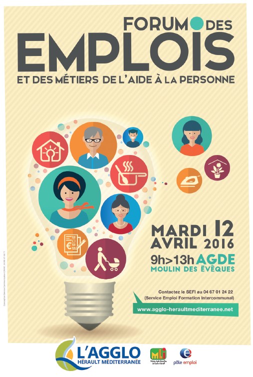 Du côté de l’emploi un rendez-vous à noter : Mardi 12 avril avec le Forum des emplis et des métiers de l’aide à la personne organisé par l’Agglo et Pole emploi avec 3 espaces : EMPLOI, Formation et agora, rendez-vous mardi 12 avril au moulin des Evêques à Agde.