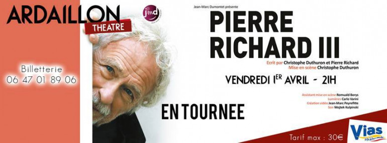 Vendredi 1° avril le théâtre de l’ardaillon reçois PIERRE RICHARD avec son spectacle Pierre Richard 3 en tournée, Éternel maladroit, faux distrait, tendre pitre, Pierre Richard est un type à la mer qui livre sur scène sa vie d’artiste et ses regrets d’homme, Orfèvre de la comédie, figure unique de la scène et du cinéma, grand clown blond et lunaire pantin, Pierre Richard sera la vendredi 1 avril à 21h00 sur la scène de L’ardaillon Théâtre, réservation des places DVPVH, je vous offre vos invitations cette semaine sur RTL2 LITTORAL
