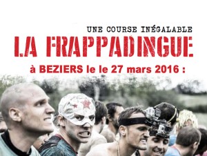 Vous avez peut-être entendu parlé des « FRAPPADINGUE » et bien ils arrivent à Béziers et organise une course d’obstacles ce dimanche 27 mars, que vous soyez un solide gaillard ou un passionné de course extrême, rendez-vous pour un parcours semé d’embûches, de passages d’échelle, de ponts de singe, de filets à grimper, de ballots de paille, d’amas de pneumatiques, de tubes à franchir, de boues… un départ donné du centre des arènes 3000 frappadingues prendront