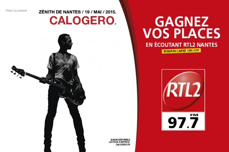 Cette semaine, écoutez RTL2 Nantes entre 13h et 17h et gagnez vos invitations pour le concert de Calogero au Zénith de Nantes.
