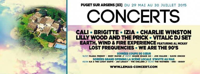 Cet été RTL2 côte d'azur vous invite aux meilleurs concerts pop rock du "Mas des Escaravatiers" à Puget sur Argens, avec : Cali, Izia , Lily Wood and The Prick , Brigitte , Charlie Winston et bien d'autres …