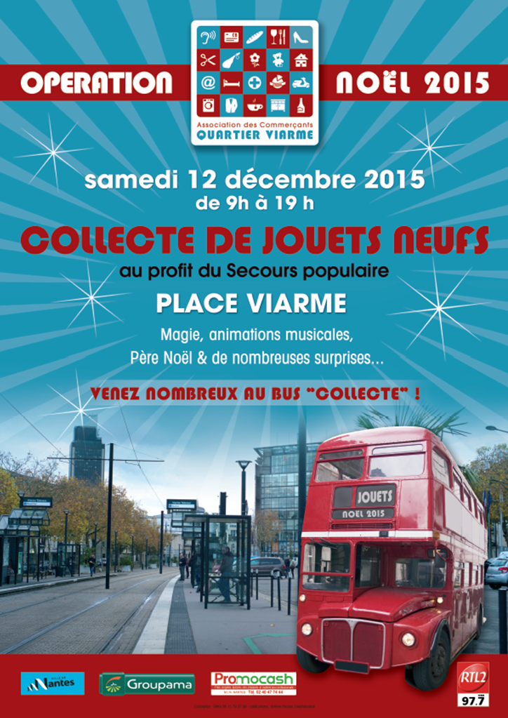 Samedi 12 décembre 2015, les commerçants du quartier Viarme à Nantes organisent une grande collecte de jouets neufs au profit du secours populaire rendez-vous de 9h00 à 19h00 avec RTL2.