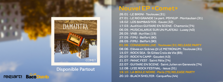 Un quatuor Toulousain qui ne cesse de grandir, de progresser et de fédérer le public : DAMANTRA groupe de scène, de live vient de sortir son nouvel EP : COMET ...5 titres à découvrir sans modération sur toutes les plateformes.
