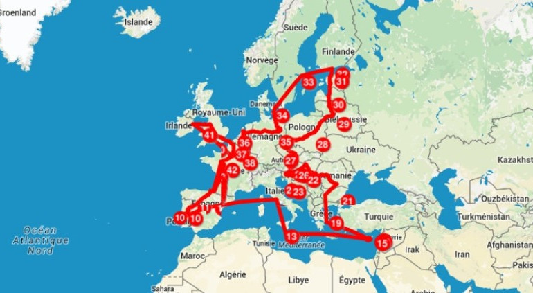 Au programme de ce périple : visite de toutes les capitales européennes du Sud à l'Est en passant par le Nord puis enfin l'Ouest. Le tout en dormant chez l'habitant. "J'ai rencontré des gens formidables. L'Europe est très accueillante. J'avais pris une tente au cas où je ne trouverais pas de quoi loger. Au final, je ne l'ai jamais utilisée. Les gens m'ont accueilli à bras ouverts" nous a confié le jeune sarthois.