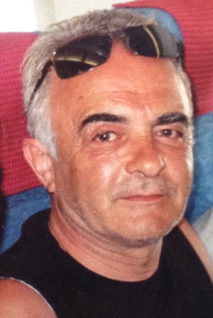 caucasien, corpulence mince mais avec du ventre, 1,80m, barbe courte grise,